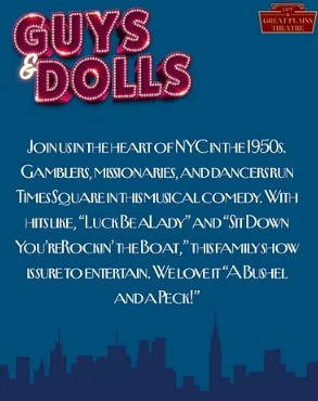 Join us in the heart of NYC in the 1950s. Gamblers, missionaries, and dancers run Times Square in this musical comedy. With hits like, "Luck Be a Lady" and "Sit Down You're Rockin' the Boat," this family show is sure to entertain. We love it "A Bushel and a Peck!"